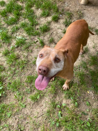 Pitt bll anziana, che non va d'accordo con gli altri cani.
