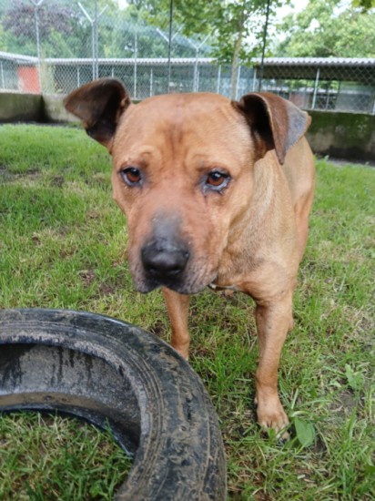 Pitbull, dal carattere docile. Cerchiamo per lui una famiglia conoscitrice della razza che non lo lasci troppo tempo da solo. Compatibilità con altri cani da valutare.